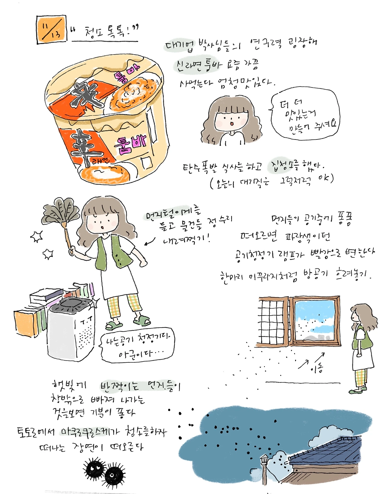 날씨 좋은 날 환기 시키며 청소하고 나면 기분이 좋다. 요즘은 공기 청정기가 있지만 그래도 활짝 창을 열고 집안 공기를 새로 바꿔 주는 것만으로도 의욕이 올라온다. 지금 무기력하다면 가장 처음으로 추천하는 작은 변화이다.