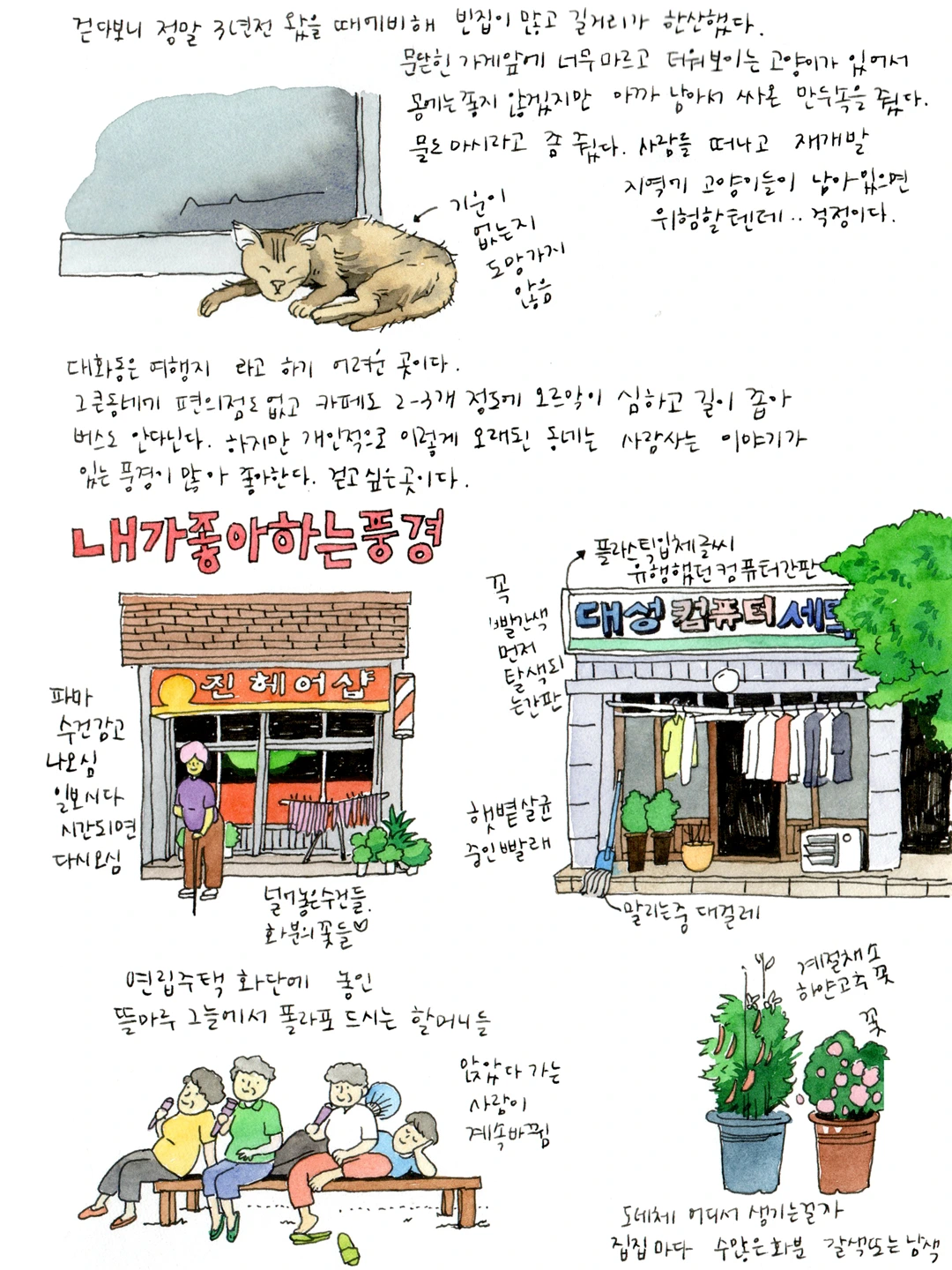 언덕으로 올라가고 높은 건물이 없어서 그런지 마을 전체가 해가 쨍하게 내리쬐는 느낌이었다.