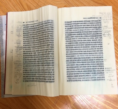 책상 위에 두고 간 책 한 권만 완전 물에 담갔다 뺀 것처럼 젖음..