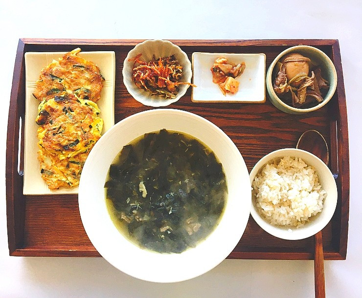 직접 차린 생일상 .엄마가 끓이고 얼리고 포장해서 보내준 미역국 포장 풀고 녹이고 끓여서 먹었다.