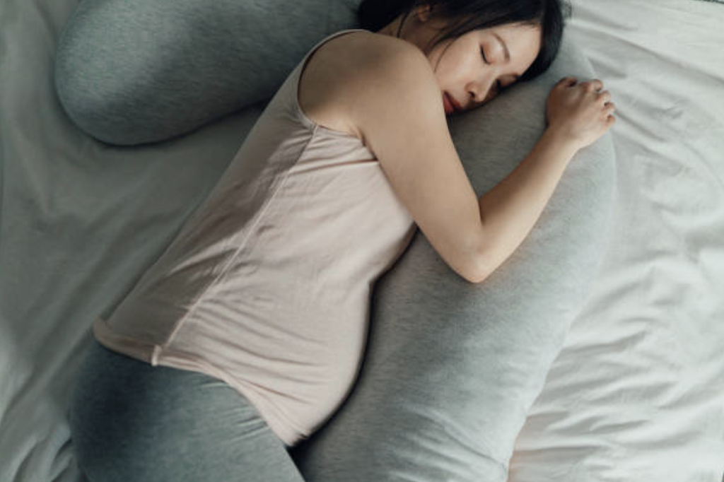 왼쪽으로 누운 상태에서 무릎을 약간 구부리면 척추와 골반의 압력을 줄일 수도 있습니다. 임신 베개나 일반 베개를 배 아래와 등 뒤에 받쳐 지지력을 높이고 자세를 안정시키는 것이 좋습니다. 무릎 사이에 작은 베개를 끼우면 골반 정렬을 유지하고 허리 통증을 줄이는 데 도움이 됩니다.