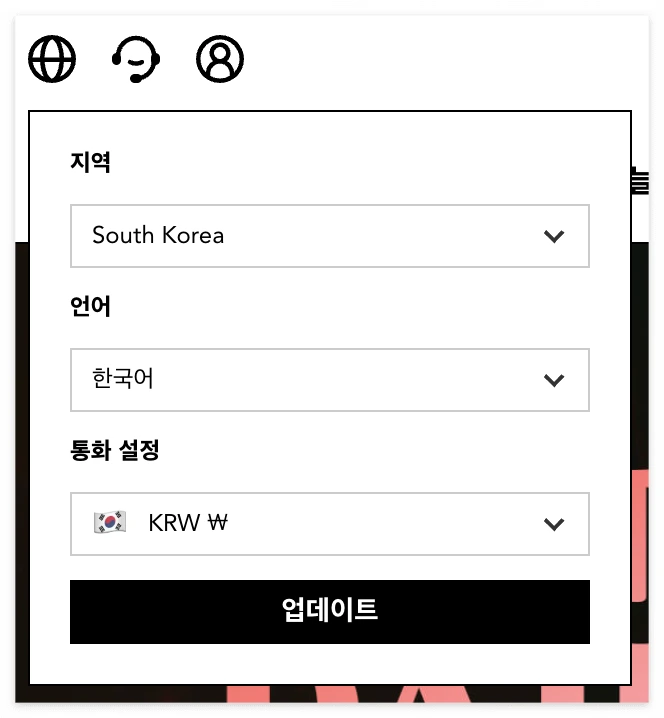 대부분의 웹사이트들은 자동으로 사용자의 국가를 분류하고 해당 국가의 콘텐츠를 보여주었다. 그 중에서 디올 공식 웹사이트와 샵사이다 쇼핑몰은 자동 분류 후, 사용자가 직접 국가 및 언어를 설정할 수 있도록 하고 있었다. 샵사이다에 경우 통화 단위까지 변경할 수 있었다.