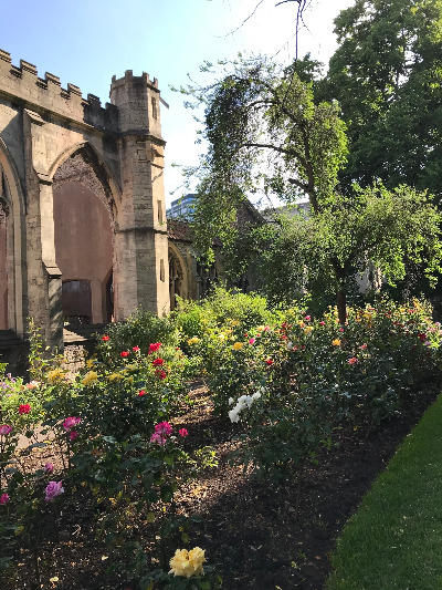 외벽/기둥만 남은 성당기사단 교회. 거기에 장미 정원... <푸코의 진자>와 십 대의 일부를 보낸 사람은 우와 이게 다 뭐람 싶다. 작년에 우연히 장미가 화사하게 피어나는 계절에 맞춰 가게 되었다. 그 전에도 여러 번 산책했지만 여기 장미가 이렇게 예쁠 줄은 몰랐지.