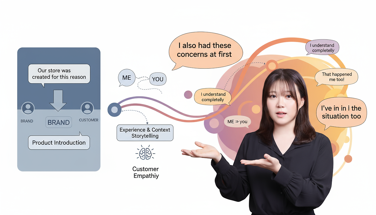 예: “우리 가게가 이런 이유로 생겼어요” → “저도 처음엔 이런 고민이 있었어요.”