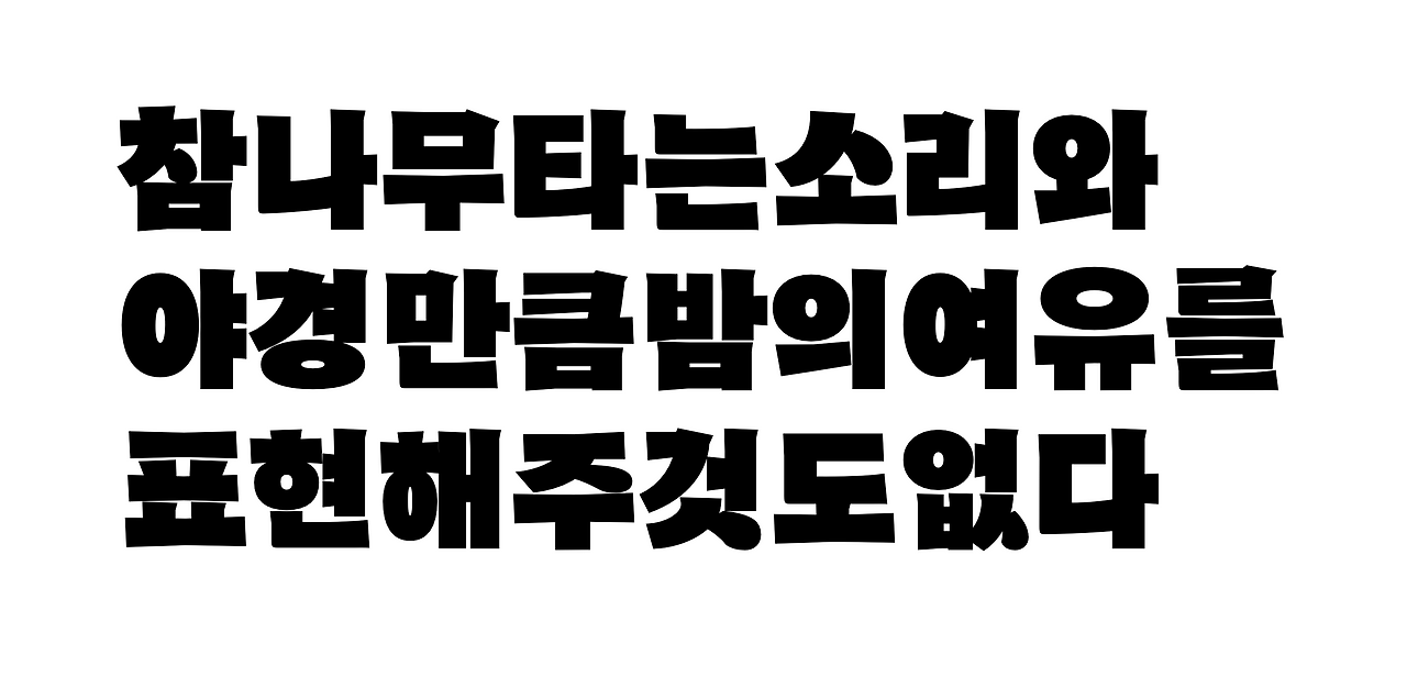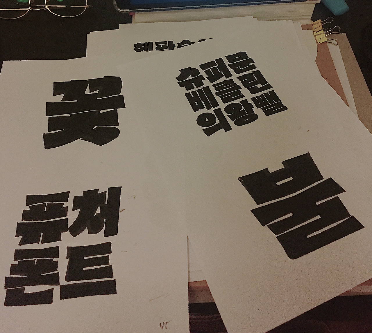 그래픽 디자이너 또는 폰트를 다루는 사람이라면 한번쯤 해보았을 생각이다. 라틴 폰트의 가장 두꺼운 굵기와 한글 폰트의 가장 두꺼운 굵기를 비교해보면 굵기 차이가 크다. 타입디자이너로서 외국의 포스터에 당당하게 제대로 굵은 제목용 서체로 활용된 라틴 폰트들을 보면 질투와 동경의 마음이 들었다. 한번 해볼까?