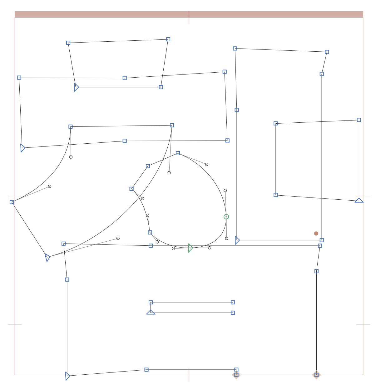 이 단계가 사실 타입디자인에서 가장 재미있는 과정이다. 대학생때 타입디자이너가 되고자 생각했을때, 타입디자이너는 항상 이런일만 하는 줄 알았었다. 손에 검은 잉크가 묻고, 시간이 가는줄 모르고 글자를 다듬고 있다보면 마치 내가 장인이 된 느낌이다. 마음에 드는 스케치가 나왔다면 폰트 프로그램에서 벡터(Vector)이미지로 옮겨야 한다. 디지털 이미지를 스케치와 가까운 느낌으로 그리는것이 목표이다. 디지털화된 이미지는 그 느낌이 디지털적이다. 손맛을 최대한 옮겨올수있도록 노력했다.