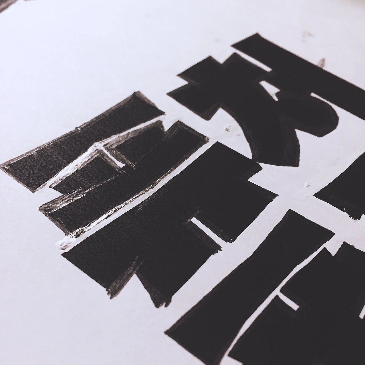 스케치단계에서는 컨셉을 잡기위해 몇 단어를 선정하여 마음에 들때까지 그려본다. 그게 마음에 들면 몇글자 더 늘려보고 더 복잡한 형태의 글자도 그려본다. 단어의 선택이 스케치의 방향에 영향을 미치기도 한다.