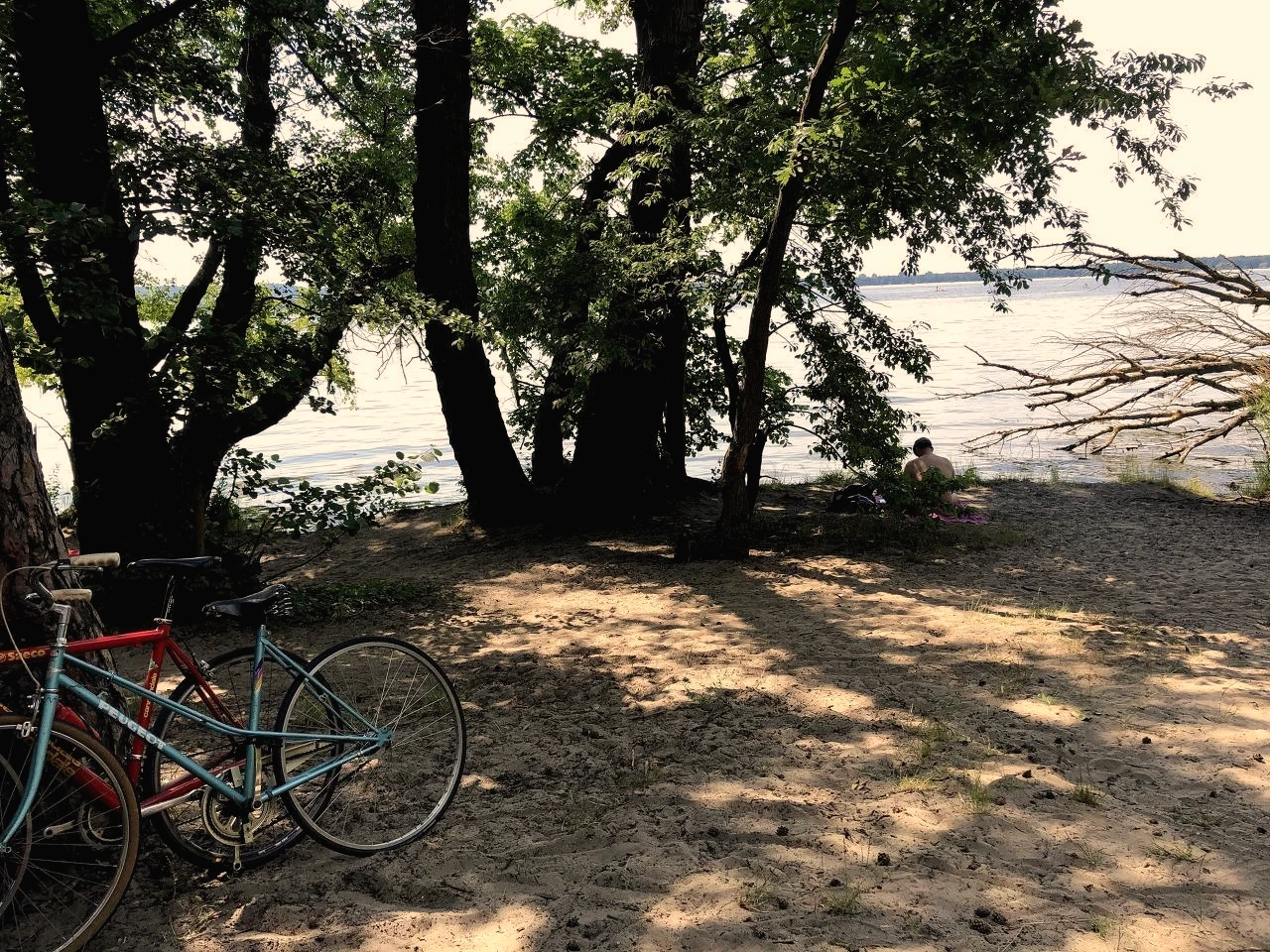 호수에서 수영하면 하늘을 볼 수 있어 좋다. 물위에 누워 있으면 구름을 감상하며 부러울 것이 하나 없다. 먹지는 않지만 조개를 줍기 놀이도 하고, 물안경을 끼고 물고기떼를 구경하기도 한다. 물장구도 치고, 어린 시절로 돌아간 것 처럼 놀 수 있다. 초여름에는 오리 가족이 새끼 오리들을 데리고 등장하기도 한다. 자전거를 타고 가니 교통비도 안들고, 호수라서 입장료도 없다.