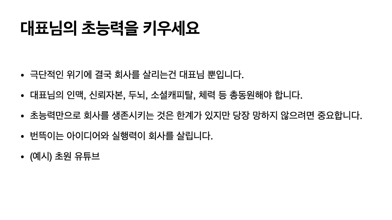 어웨이크코퍼레이션에 2021년 투자하고(미어캣/크리에이터리), 2024년에 후속투자(초원 피봇팅)한 서울대기술지주의 요청 강의에 따라 만든 자료입니다.