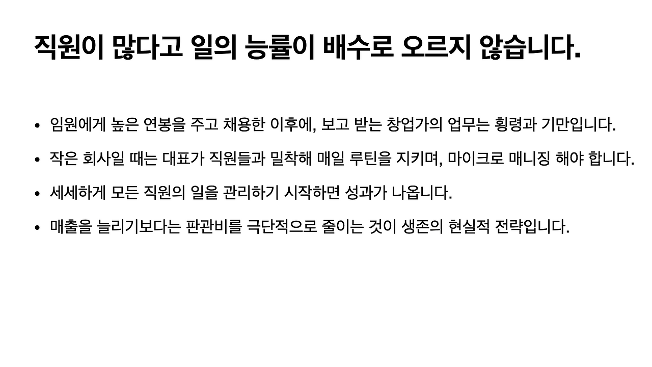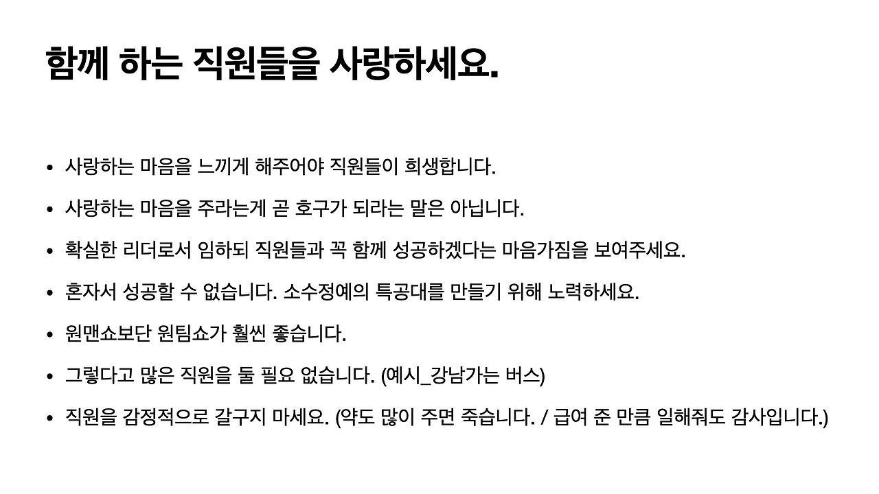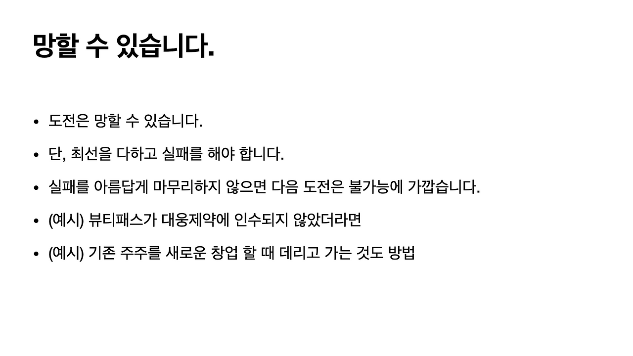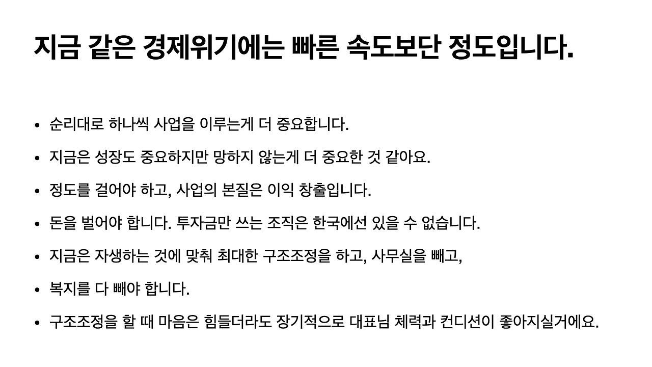 경영 과정 속에서 크고 작은 실패를 통해 배웁니다. 소중한 배움을 아카이브하고 싶어 글로 정리합니다. 훌륭한 사업을 통해 인류를 위한 삶을 살아가고 싶습니다.