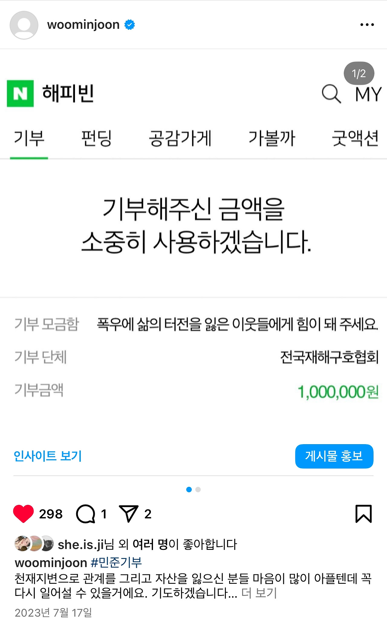 늘 기록하지 않으면 그 당시 마음이 흐릿해지는 것 같아 기부했던 날을 기록해둡니다.