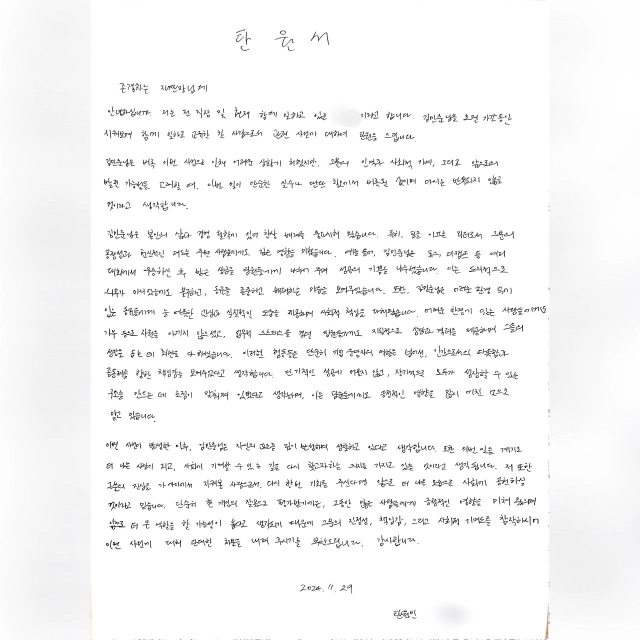 이후 그들은 나를 위해 탄원서를 작성해주었다. 탄원서의 내용이 감동적이라 발췌해본다.