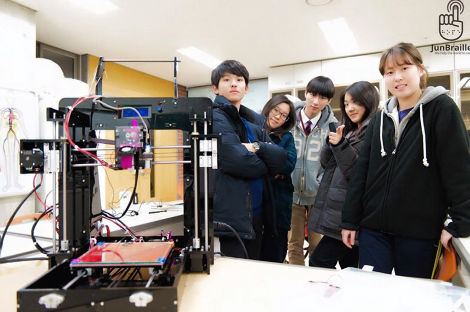 그렇게 개발한 3D 프린터는 여러 학원, 학교로 납품해 준브레일을 운영했다.