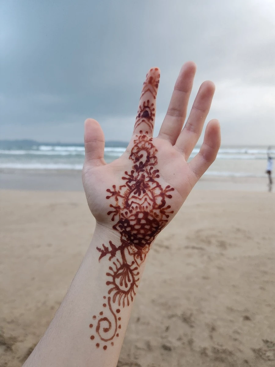 점심에 비프 커리를 두 그릇씩 가져다 먹고, 잭푸르트도 처음 먹어봤다. 알캉알캉한 식감에 황도와 비슷한 맛이 나는 것 같기도 아닌 것 같기도 했는데 되게 맛있었다. 부른 배를 두드리며 조식을 준비해주시는 분에게 스리랑카 전통 헤나인 ‘멘디’를 받았다. 도안도 없이 손바닥과 팔에다가 슥슥 그림을 그리는데 한치의 망설임도 없었다. 30분을 말리고 물로 씻어내니 멋진 무늬가 손에 남았다. 물을 안 묻히면 1주일, 서핑을 하면 3일이라던데 지워지면 한 번 더 부탁을 드려야겠다.