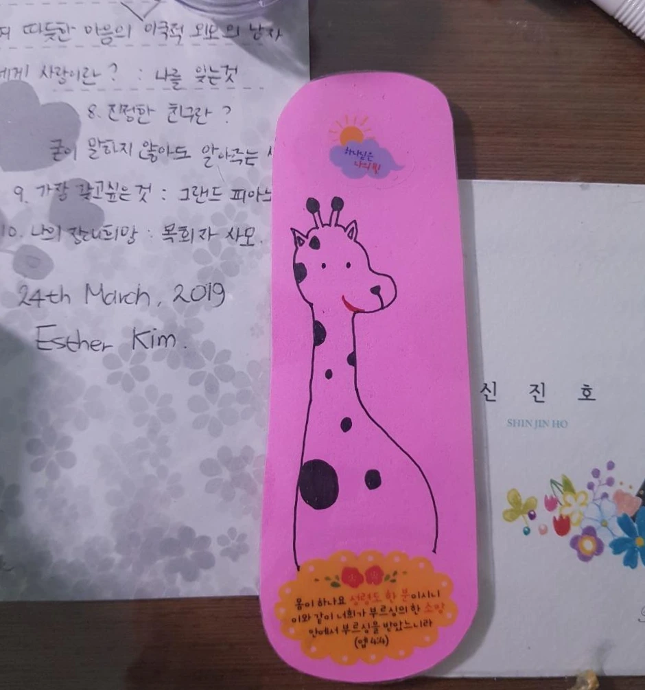 오후가 되어 집안 청소를 끝내고, 이 일에 대해서 일기를 쓰려고 책상에 앉은 고요한 순간, 남편이 연애 시절 선물 해주었던 교회에서 학생들과 만든 작은 책갈피에 적힌 성경 말씀이 보였다.