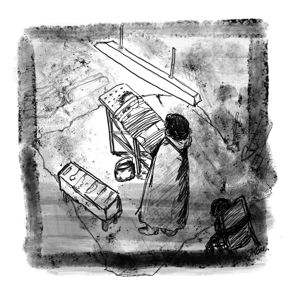 킬러는 죽은 타깃의 몸에서 피와 노폐물이 빠져나가기를 기다렸고, 그것들을 비닐에 모아 하수구에 버렸다.