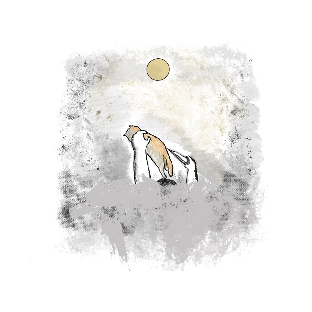 밝은 달빛에 비춰보면 고양이 등의 검은 연기가 잘 보일까 싶어서 새끼 고양이를 번쩍 들어올리고 잘 살펴보는데 검은 연기는 보이지 않았다.
