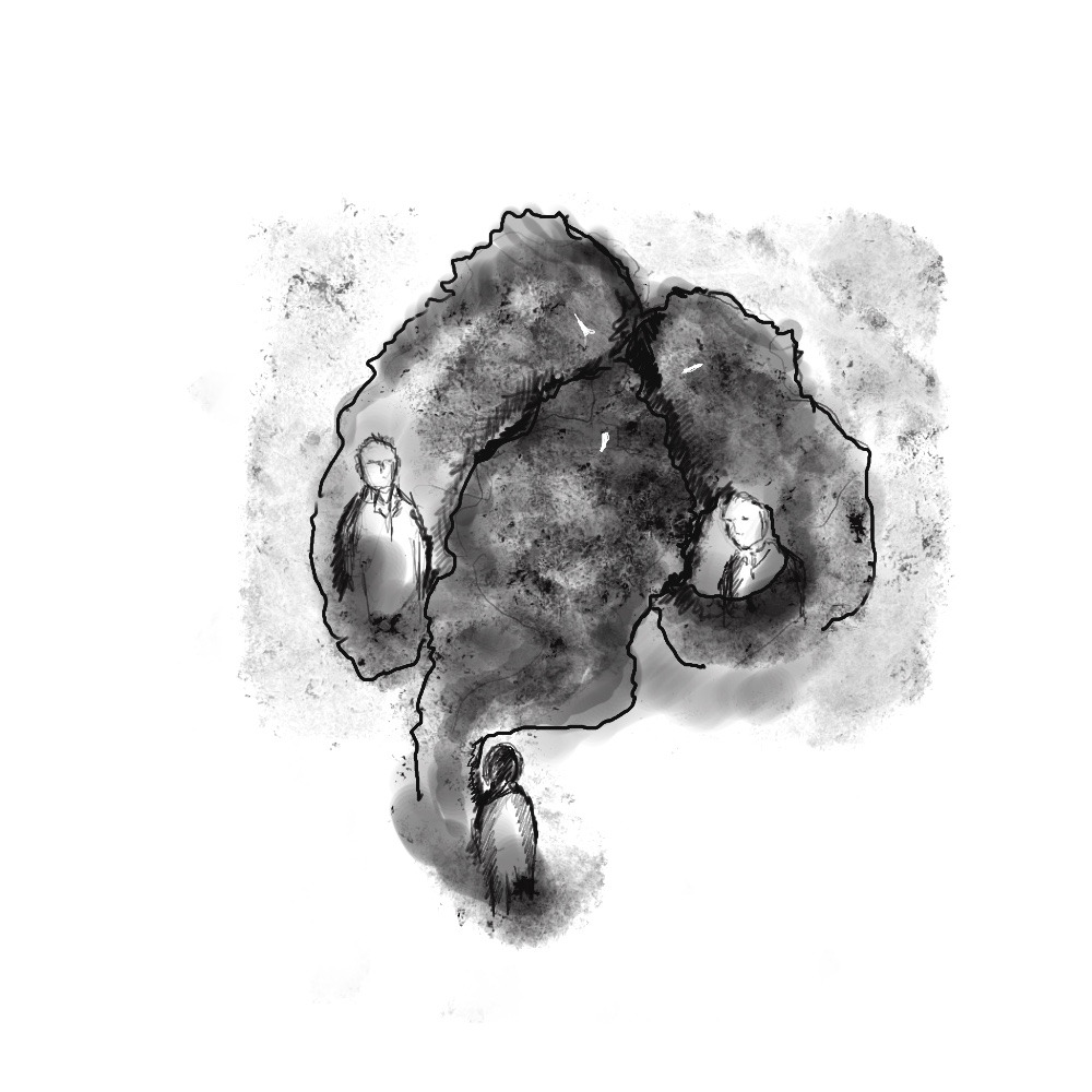 자세히 보니 엄청난 크기의 세 마리 검은 연기가 뒤엉켜 있었는데, 고개를 들어 천장을 보니 자신의 머리 위에서도 엄청난 크기의 검은 연기가 나오고 있었다.