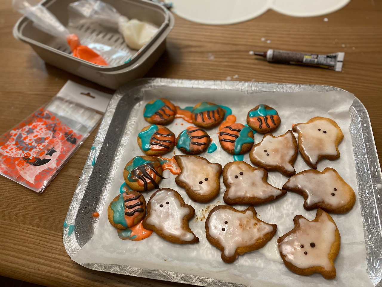좋아하는 친구에게 직접 만든 쿠키를 선물하며 특별한 날을 함께 기념하고 싶은 마음. 그 마음이 예쁘다. 정성스레 완성된 수제 쿠키가 서툴고 예쁘다. 해피 할로윈데이.