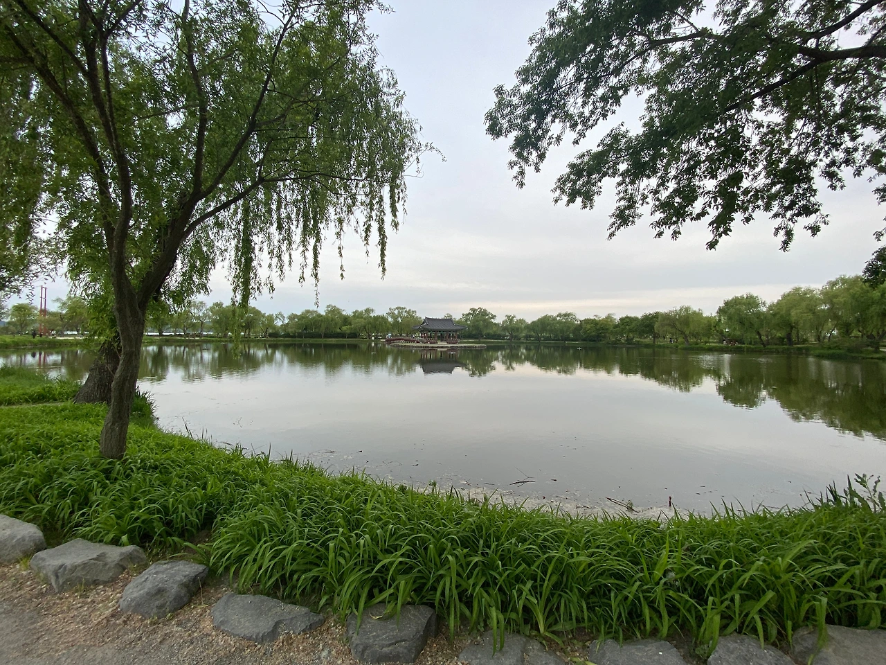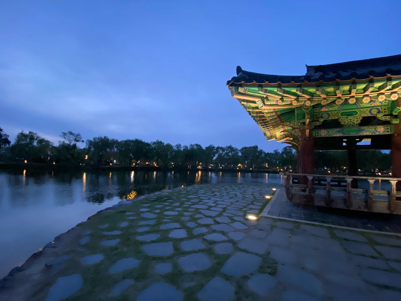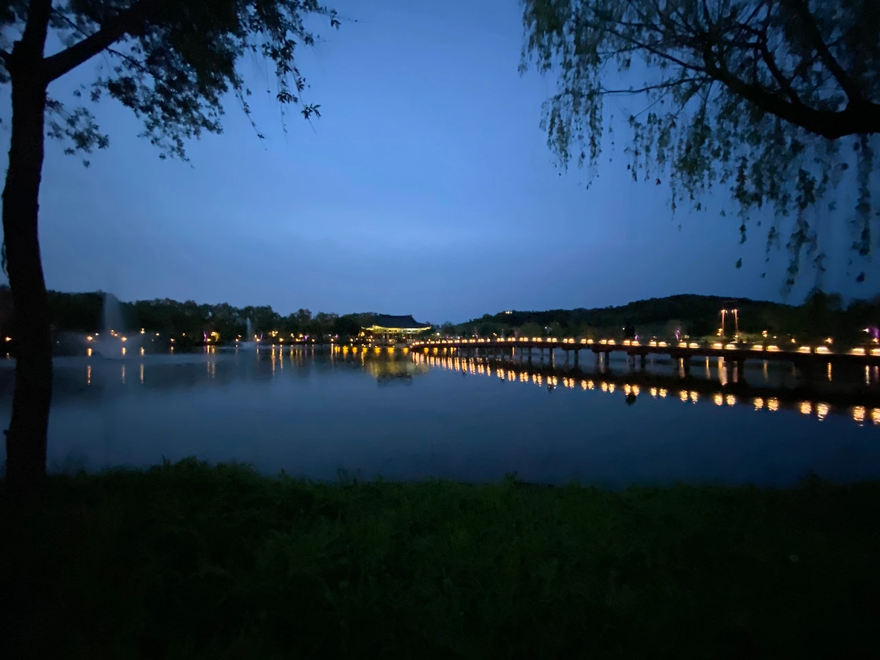 한 시간 가량 지났을까. 해가 뉘엿뉘엿 지면서 연못 주변부터 중간에 있는 포룡정과 목교까지 금빛 조명이 들어오기 시작했다. 조명 빛이 물 위에 부서지면서 고즈넉하고 아름다운 장면이 펼쳐졌다. 과연 야경이 일품이구나. 그러나 주변 풍광이 무색하게도 내 속은 여전히 시끄럽게 요동치며 영 다른 세상이었다. 겉으로는 아무렇지 않은 척 주변 풍경을 찍어가며 화를 삭이려고 했지만 잘 되지 않았다. 돌아오는 길에는 저녁시간을 즐기지 못한 아쉬움까지 더해지며 기분이 가라앉기만 했다.