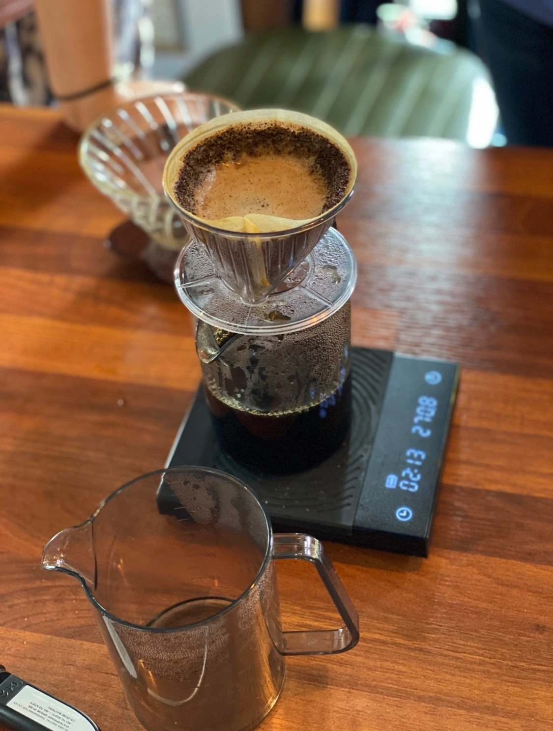 (커피가 추출되는 시간은 2분 남짓 걸리는데, 과정에 빠져들다 보면 더 느리게 느껴진다.)