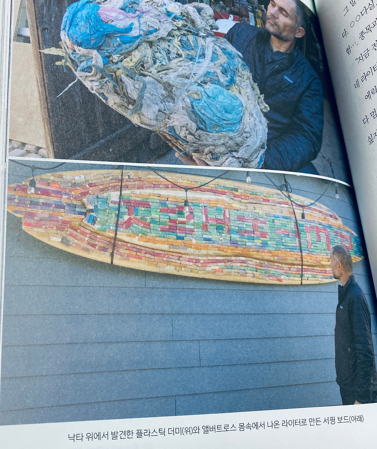 알려졌다시피 플라스틱은 불사의 존재에 가깝다. 자연에서는 분해되지 않는다. 양이 늘어나며 가치가 떨어져 재활용률도 낮다고 한다. 83억 톤은 다 어디로 갔을까? 어마어마한 양이라 비현실적으로 느껴진다. 이 중 상당한 양이 바다와 해양 생물에게 흘러들었다. 부서지고 작아지기도 했다. 미세플라스틱에서 작은 것은 머리카락 지름보다 작아진다고 한다. 북태평양에 떠다니는 거대한 쓰레기 지대도 있다. (GPGP, Great Pacific Garbage Patch) 우리나라의 15배 크기로 추정되는 구역인데 스모그처럼 플라스틱으로 뒤덮여 있다. 바다는 물이고 물은 흐르고 있기에 플라스틱의 여정은 여기서 멈추지 않는다. 잘게 부서진 조각들은 결국에 해안가로 돌아온다. 사람에게 다시 돌아오는 것이다.