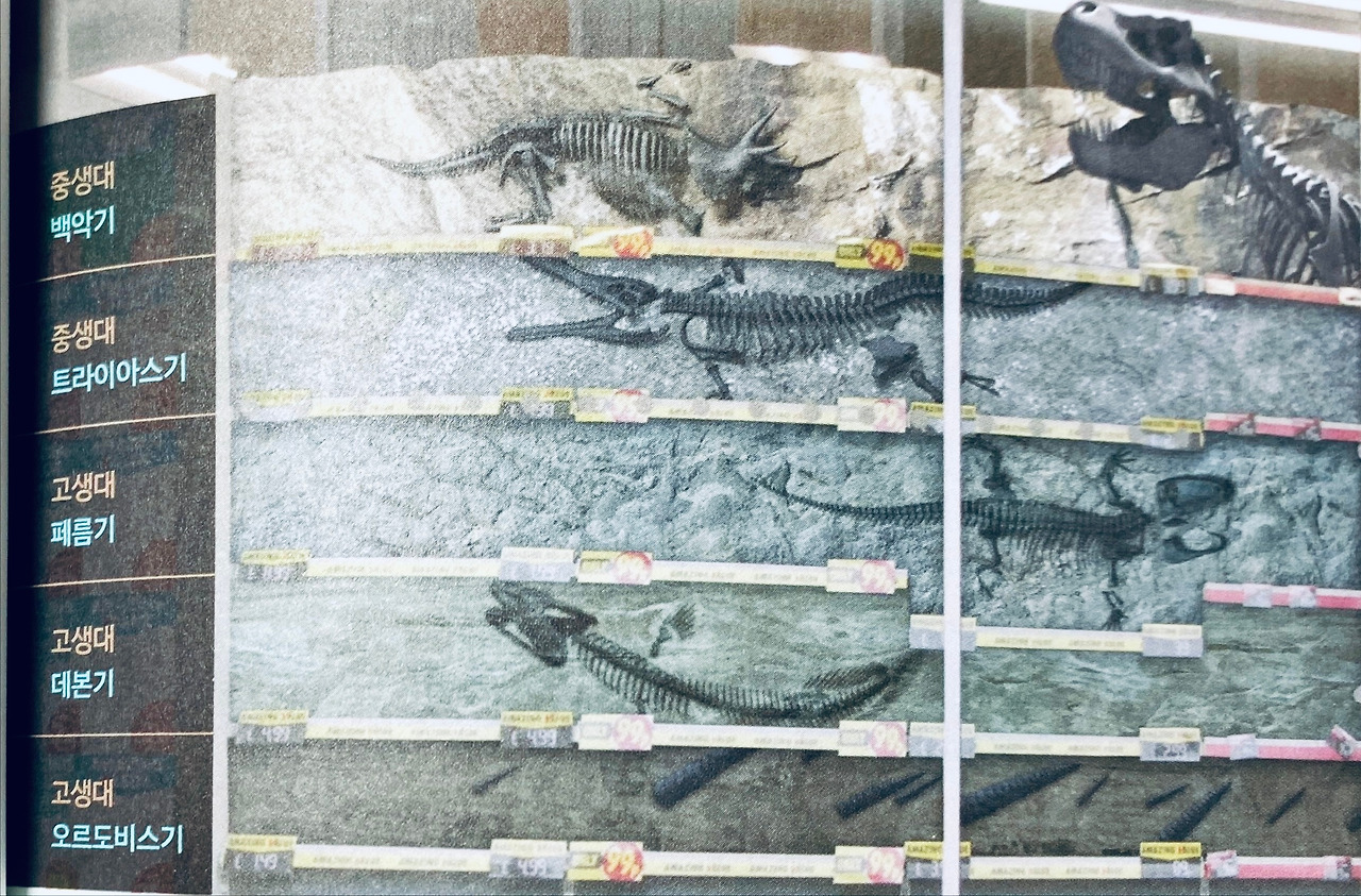 생소한 용어를 늘어놓자면, 지질시대는 누대Eon-대Era-기Period-세Epoch-절Age 로 분류된다. 생물의 출현과 멸종에 따라 수백, 수천만 년의 단위로 나뉜다. ‘고생대’, ‘백악기’, ‘쥐라기’ 등과 같은 용어를 들어본 적이 있을 것이다.