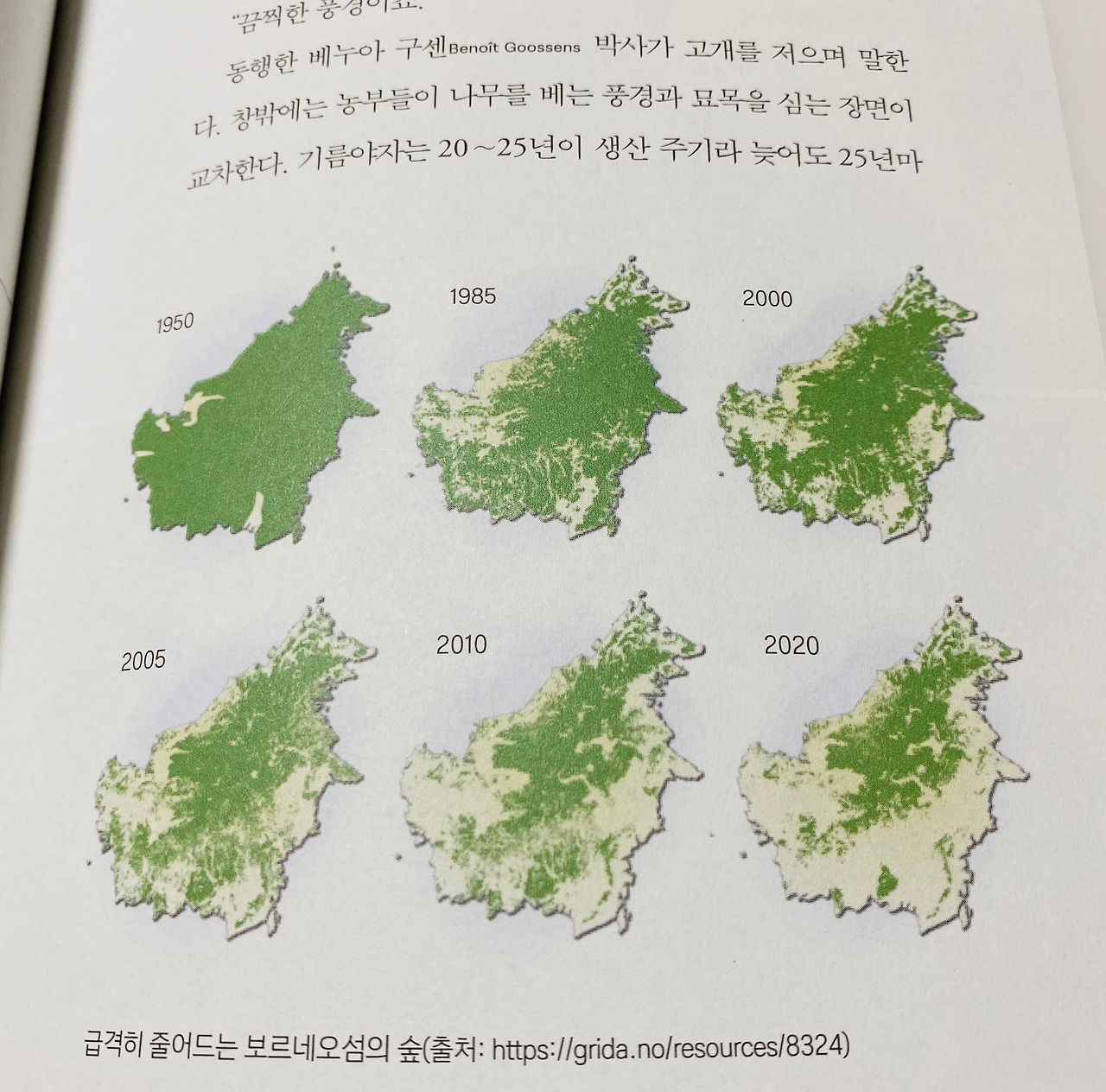 세계에서 세 번째로 큰 섬, 동남아 보르네오섬은 정글이 사라지고 팜유농장으로 뒤덮이고 있다. (p.103)