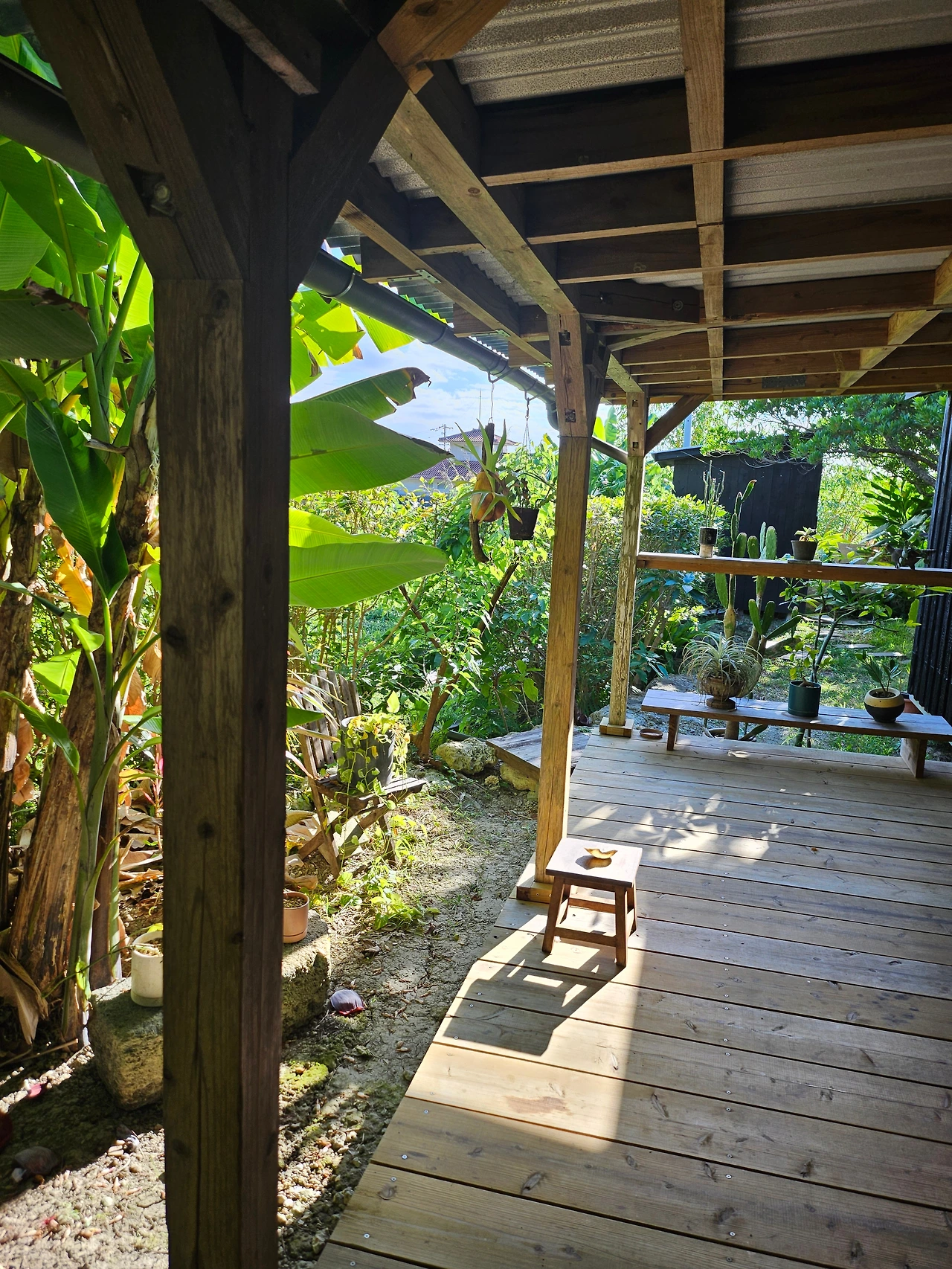 마루 앞에는 바나나 나무가 무성하게 심어져 있어 내 눈앞에는 오로지 초록뿐이다.
