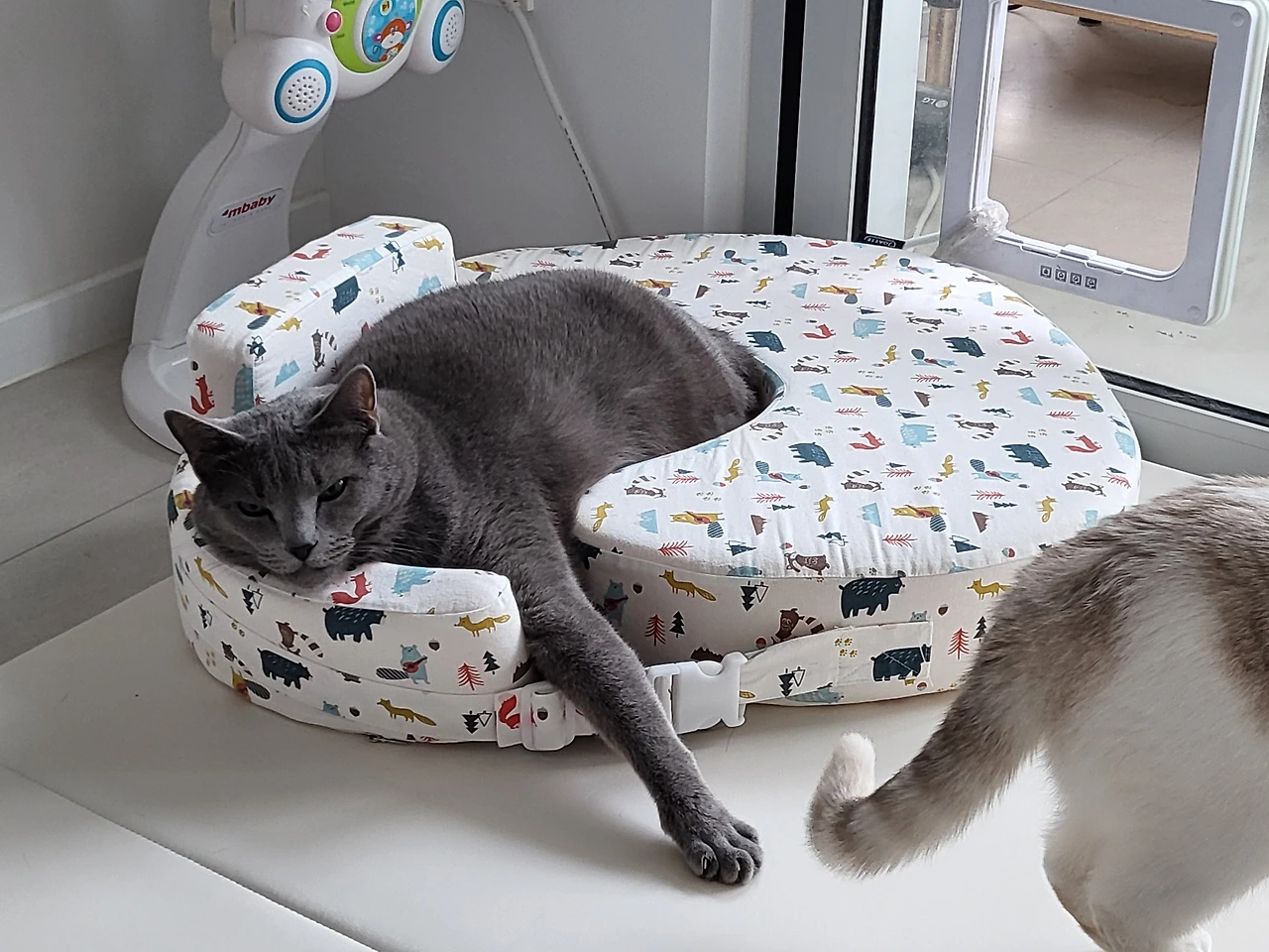 수유쿠션에 몸을 퍼즐처럼 끼워맞춘 코코