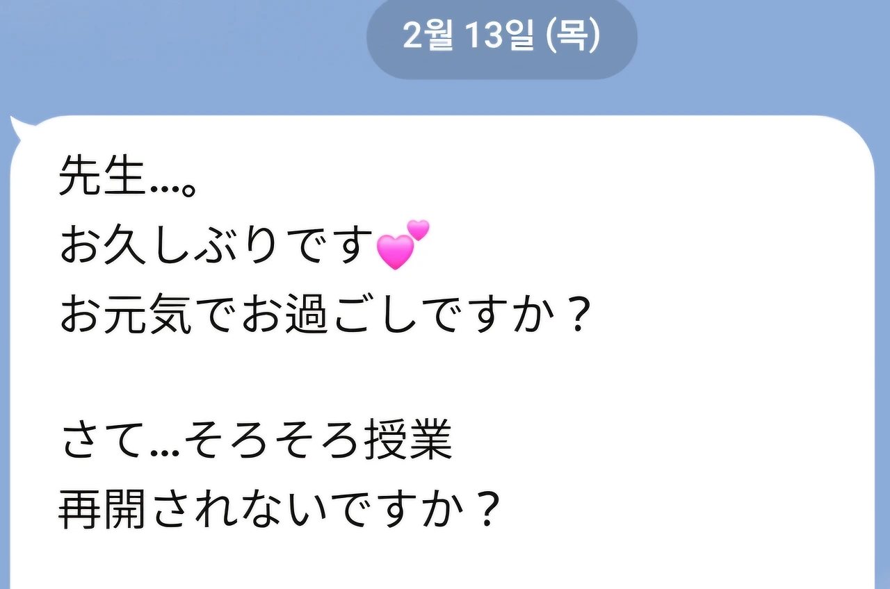 "저도 다시 일을 하고 싶어요. 아직은 3월에 복귀할 수 있을지 모르겠지만.. 제가 수업을 재개하면 꼭 연락드릴게요."