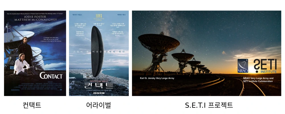 이 소설을 원작으로 한 영화 “컨택트”에서는 외계의 지적 존재를 다룹니다. S.E.T.I(외계 지적 생명 탐사)프로젝트를 떠올리게 하는 과학 시설에서 주인공은 외계에서 오는 신호를 통해 지적 존재의 흔적을 발견합니다. 그 신호로 어떤 장치의 설계도를 받게 되고, 그 장치를 통해 외계 존재와 접촉하게 됩니다. 기존의 많은 영화들과 달리 이 영화에서는 외계 존재와의 만남을 미스터리하고 낭만적으로 표현해, 신비로움을 더합니다.