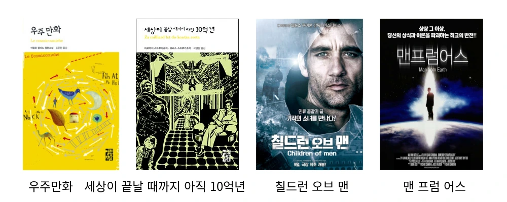 드디어 길고 긴 추천 목록이 끝났습니다. 저는 유한한 길이의 추천 목록을 소개했지만, 인간의 상상엔 끝이 없을 것이기에 SF 소설과 영화의 목록은 무한할 것입니다.