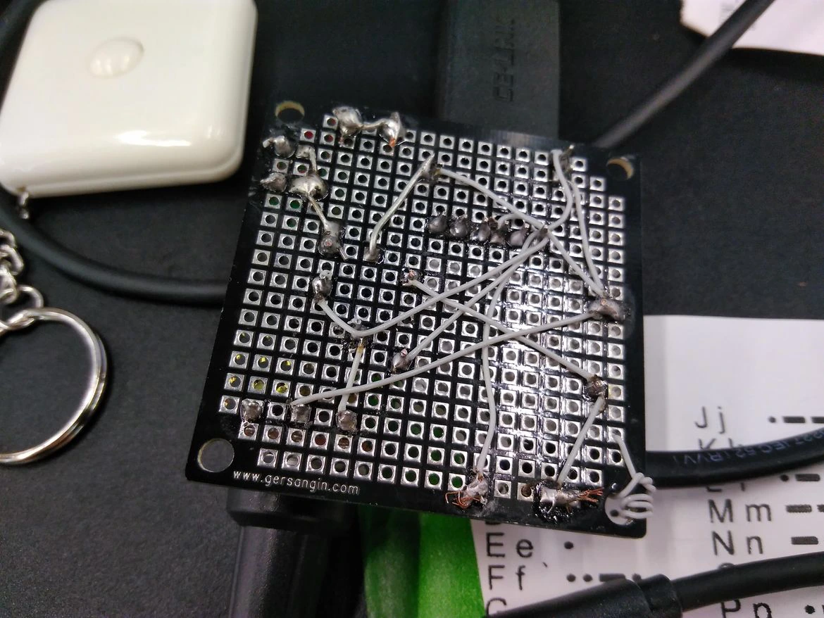하드웨어를 만드는 일도 마찬가지입니다. 통제된 논리의 세상에서 빠져나온 아이디어는 물리적인 실재를 가진 다양한 요소들과 어울리며 예상치 못한 크고 작은 문제들을 만들어 냅니다. 모스 부호 키보드의 경우, 소자들을 연결하여 회로를 만들어야 합니다. 브레드 보드에서 실험적으로 구성한 회로를 다시 만능 기판으로 옮기며 전선과 소자를 납땜합니다. 납땜을 한 각각의 지점과 전선의 모든 가닥들이 실패의 지점이 될 수 있습니다. 회로가 기대한 대로 동작하지 않는다면 멀티미터를 통해 전류가 흐를 수 있는 모든 지점들을 확인해 봐야겠지요. 어떤 경우엔 납땜 인두로 가하는 지나친 열로 인해 소자가 타버릴 수도 있습니다. 소자를 기판에서 떼어내고 교체하는 번거로운 작업을 피할 수 없죠. 키보드를 두드리던 깨끗한 손이 이제 때 묻고 거칠어질 시간입니다.