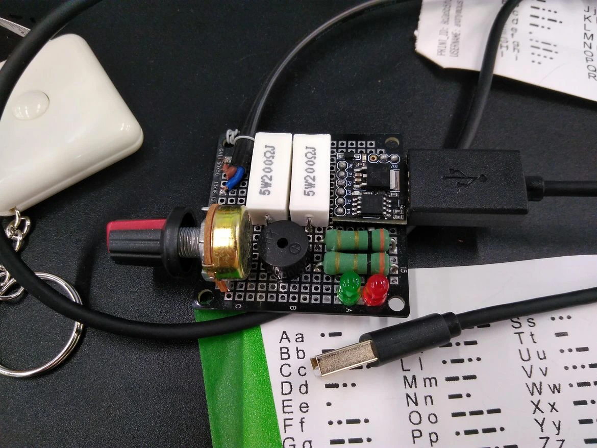 모스 부호 키보드의 아이디어는 간단합니다. 모스 부호 송신에 사용하는 장치와 마찬가지로 눌렀다 뗄 수 있는 스위치가 하나 있습니다. 사용자는 스위치를 이용해 모스 부호를 입력하고 장치는 이를 해석하여 알파벳으로 변환합니다. 장치는 USB를 통해 컴퓨터와 연결되는데 키보드 장치로 인식됩니다. 최종적으로는 장치에서 해석한 알파벳을 키보드 입력으로 컴퓨터로 전달합니다.