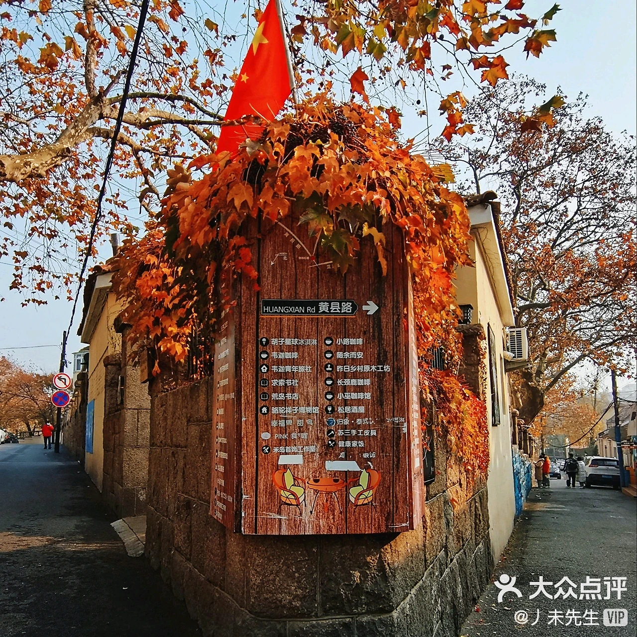 칭다오 최초의 현대화 거리로 '칭다오 최초의 거리'로 불리는 대학로, 100년 된 플라타너스 오동나무와 붉은 기와지붕이 조화롭게 어우러져 아름다운 카페들이 즐비한 거리.