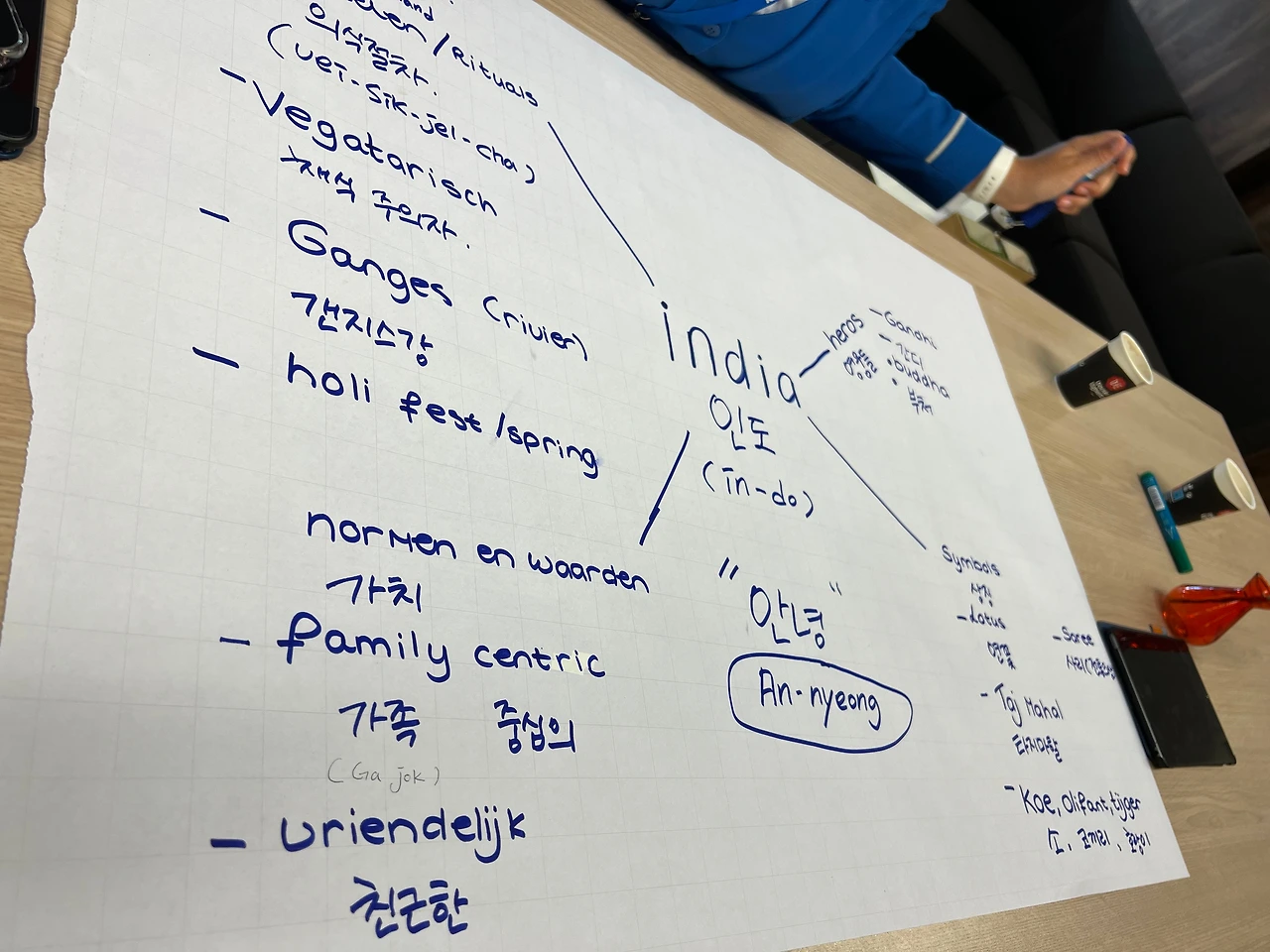 자칭 생존영어를 구사한다고 생각하는 조금 옛날사람의 나는 같은 한국인 동기들의 헉소리나는 영어실력에 두 번째 놀라움을 느꼈다. 예전에 비해 영어는 필수적인 언어가 되었고 내가 자라나던 시절에 비해 요즘세대는 예전보다 자연스러운 영어권 환경에 많이 노출되어 있다는 사실은 알고 있었지만 국제학교와 오랜 외국생활등의 남다른 배경을 둔 그들(한국인 동기)과 함께 공부할 수 있다는 것은 남다른 자부심을 심어주었고 나만의 자극제가 되었다. 교육이 시작되고 며칠이 지나자 조용히 침묵하는 것을 선호했던 나는 스스로 변화해야겠다는 생각이 들었다. 현지 인스트럭터(강사)들은 조용히 있는 것을 오히려 수업에 적응하지 못한다 여겼고 끊임없이 학생 각자의 경험담과 견해들을 궁금해했다. 내가 고수했던 방법대로 '입꾹'을 계속해서 유지한다면? 여기서 나는 이해도가 떨어져 수업을 따라가지 못하는 사람이 되거나 아니면 소통의 문제가 있는 사람으로 낙인찍힐 수 있다. 그도 그럴 것이 3일 차 정도 다른 신입의 더치크루들과 그룹을 나누어 함께 수업을 한 적이 있었는데 나는 이때의 수업이 가장 기억에 남고 재미가 있었다. 주제는 어떤 특정나라를 정하여 그 나라에 특징에 대해 마인드맵을 만들어 발표하는 수업이었다. 함께 발표자료를 만들어가며 서로의 생각을 토대로 이런저런 의견을 나누느라 주어진 시간이 언제 흘러갔는지 모를 정도였는데 토론문화로 자라난 더치들 사이에 있으니 그런 문화가 익숙지 않은 나조차도 자연스레 스며들 수 있는 신기한 경험을 했다.