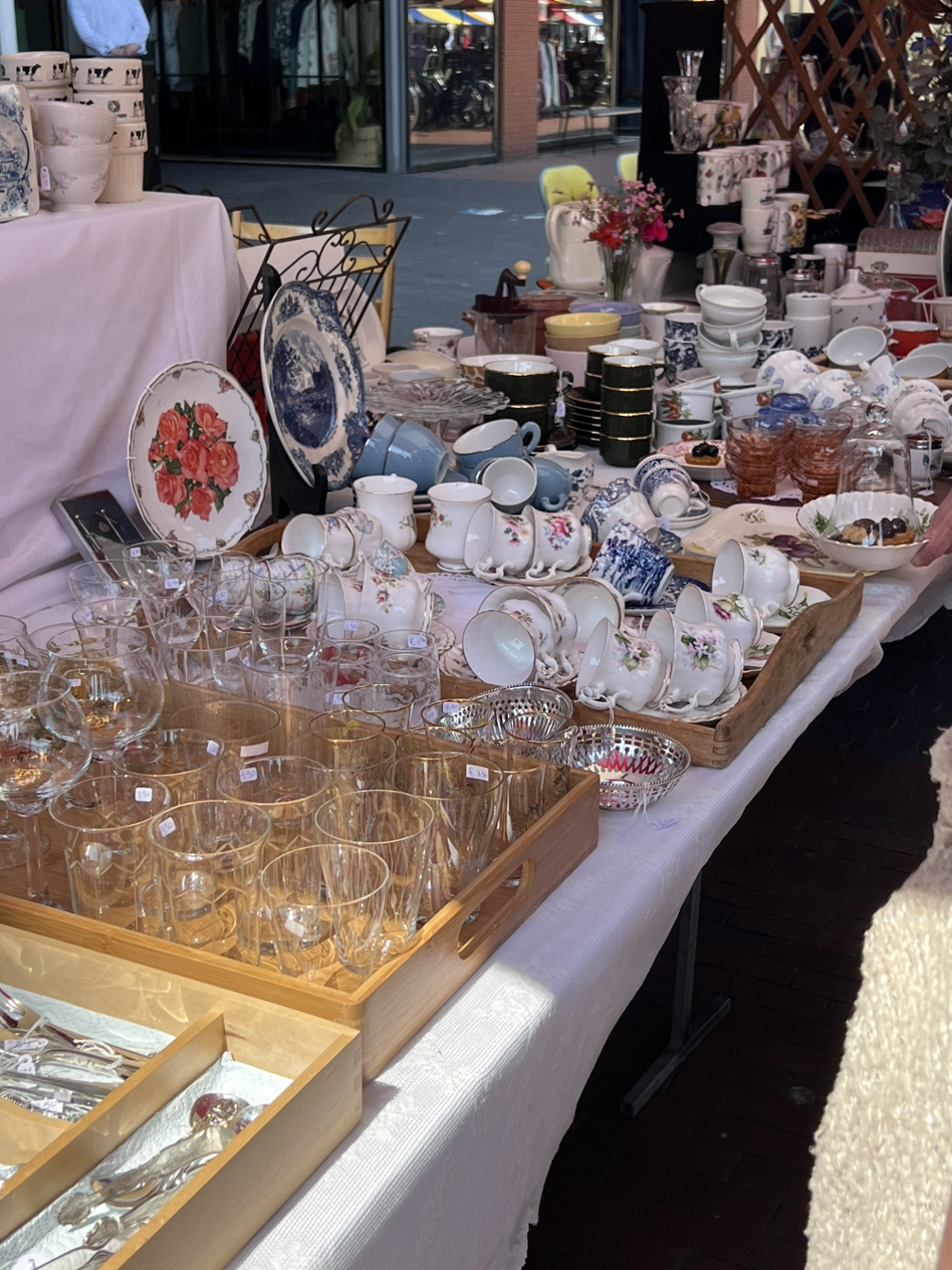 돌아오는 길에는 일요일의 ’Flea market’을 우연히 발견했는데 주부가 되고 보니 관심을 가질 수밖에 없는 예쁜 유럽 브랜드의 접시와 찻잔들이 빈티지 상태로 여기저기 널려 있는 것 아닌가. 얼마 전 백화점 구경 갔을 때만 해도 헉소리나는 가격에 돌아섰던 그 예쁜 그릇들이 종류도 다양하게 좋은 상태를 유지한 채 '나데려 가세요’ 외치고 있는 것 같았다. 신이 났지만 전부 운반할 수 없기에 욕심 내지 않고 다음 주말 비행을 기약하며 찻잔세트 2개와 디저트 접시 2개를 집어 들었다. 나는 나름 적게 고른 건데 간만의 큰손? 손님이었는지 주인 할아버지께서는 총금액에서 5유로나 인심 좋게 깎아 주셨다.