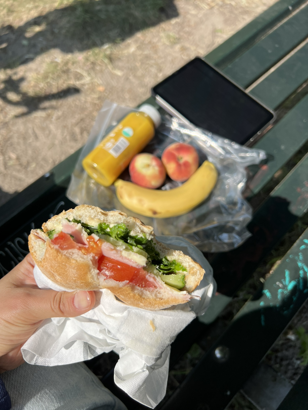 매트를 펴놓고 낮잠도 자고 책도 읽다가 조식에서 싸 온 샌드위치도 먹고 전날 마트에서 산 유럽의 납작 복숭아도 어찌나 달고 맛있었던지..