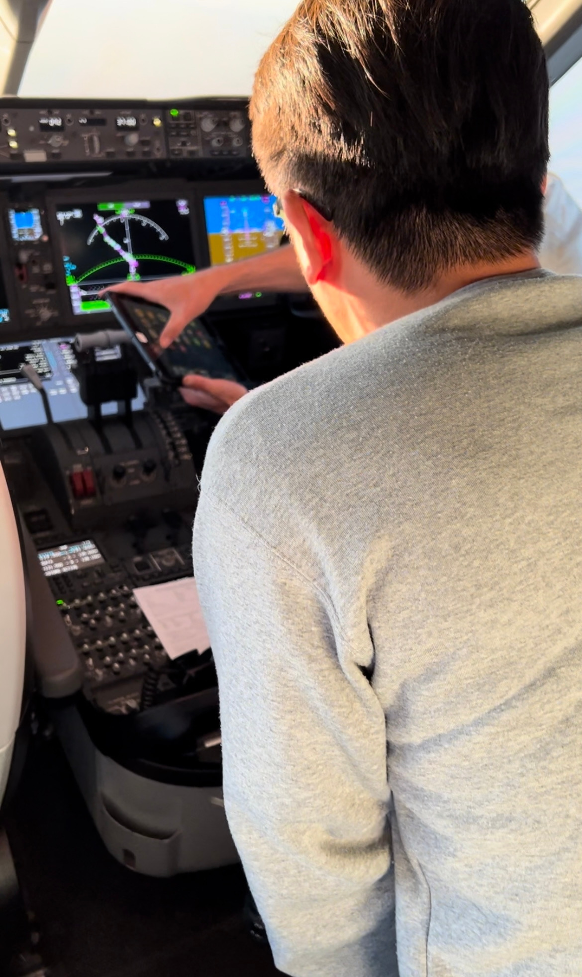 비행 도중 한 번 잠들기 시작하면 깊게 잠드는 남편을 부리나케 깨웠다. 가족이나 지인을 승객으로 데려오면 무조건 해야 하는 일이 "조종석 방문하기" 때문이다. 나의 전 직장이었던 항공사인 경우 어떠한 상황에서든 철저한 보안상의 이유로 함께 일하는 크루들 외에는 절 대 로 조종석을 구경할 수 없었다. 그러나 지금의 항공사의 정말 정말 좋은 점은 일반인이라면 상상할 수 없는 운항 중인 조종실을 직원의 가족이라는 이유로 다소 쉽게 초대받아 들어갈 수 있다. 마침 저 멀리 동터오는 아름다운 아침을 꼭 보여주고 싶기도했다. 잠결이라 몽롱한 상태의 남편은 제대로 그 뷰를 즐겼을지는 모르겠지만 이로써 회사에 입사하게 되면 꼭 하고 싶은 리스트를 완벽하게 해낸 것 같다.