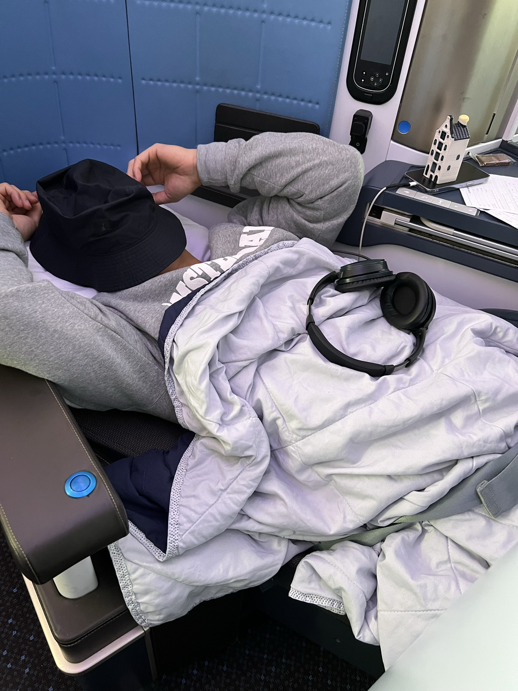 KLM네덜란드항공은 직원으로서의 고유한 절대적인 좋은 문화가 있는 곳이다. 항공사는 일종의 무형의 서비스를 판매하는 회사라 하지만 우리나라사람들이 생각하는 '고객이 왕'이라는 개념의 서비스와는 조금 다른 면이 있다. 그것은 직원이 행복해야 양질의 서비스를 제공할 수 있다는 개념인 듯한데 그렇기에 함께 일하는 크루들을 서로 잘 챙기려 한다(좋은 팀워크의 시작이라고 생각한다). 매번 그렇다 장담할 수 없지만 대부분 그러한 환경인데 남편을 승객으로 데리고 돌아가는 항공기에 그저 걱정 없이 일반자리만 받을 수 있다면 좋겠다는 마음으로 비행 준비를 했다. 먼저 공항에 도착한 남편에게서 다행히 별무리 없이 티켓을 받아 게이트에서 보딩을 기다린다는 메시지를 받아 안도했다. 그런데 갑자기 비즈니스석에 하나의 공석이 남아 혹시 남편을 줘도 되겠냐는 사무장님의 배려가 있었다. 예상치 못했는데 역시 남편은 행운아였던 것인가, 12시간 가까운 비행시간을 아주 편안하게 누워 숙면하는 모습을 보며 나는 열일?을 하였지만 아주 뿌듯하고 좋았다. 마음속으로 내 평생 비즈니스석을 돈으로 사 줄 수 없을지도 모르지만 이런 기회에 좋은 경험을 할 수 있게 해 주어 다시금 정말 감사했고 회사에 대한 충성심과 애사심이 폭발하였다.