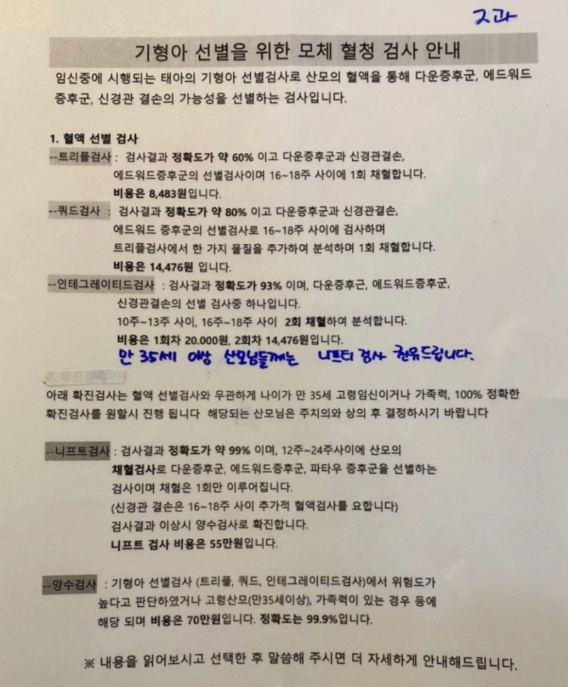 2차 검사부터 선택은 산모의 몫이었다.