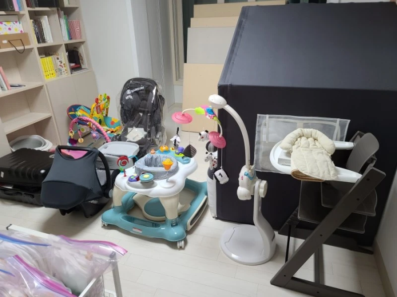 어른들이 보기엔 유난 맞아 보일 정도로 다양한 '육아 템'들이 방을 가득 채웠다.
