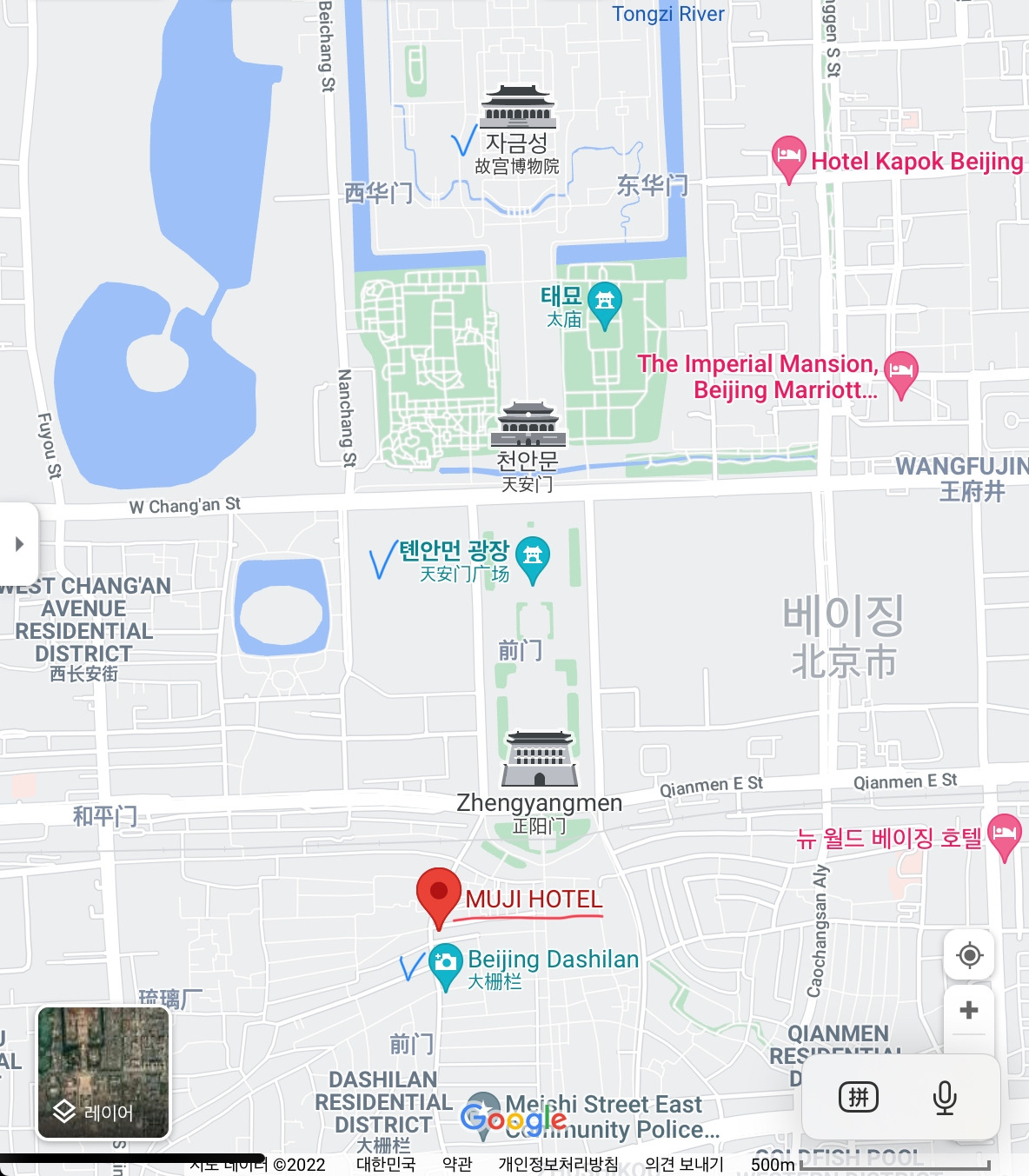 무지호텔 베이징은 베이징 중심인 천안문 광장 근처에 위치해있다.