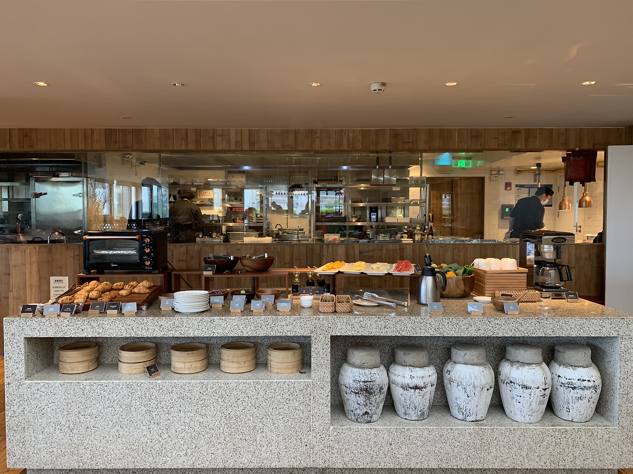 이 곳은 아침에는 조식 레스토랑으로, 그 외에는 일반 레스토랑으로 이용할 수 있는데 조식 메뉴는 조금은 특이하게도 일식과 중식 2가지를 제공한다.