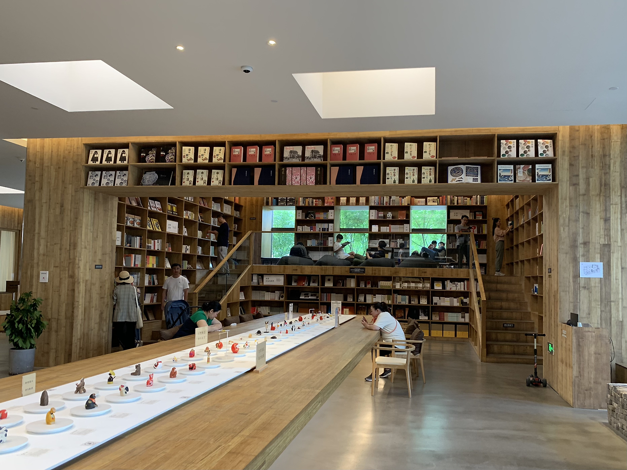 그 앞 긴 테이블 위에는 작은 예술 전시 같은 것을 진행하는 모양이다.