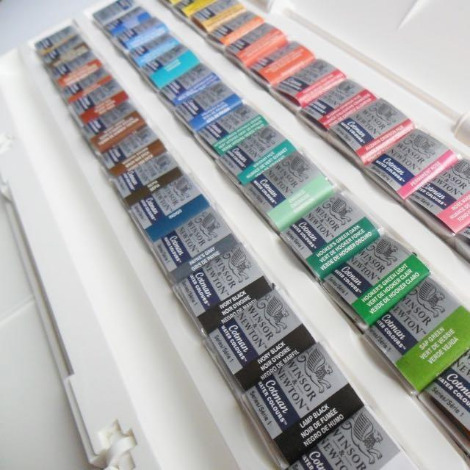 나는 수채화용 고체 물감 팔레트가 있는 매대로 향했다. 크기는 아기자기하지만 가격은 아기자기하지 않은, 보기만 해도 소장욕구가 솟구치는 고급스러운 패키지와 컬러의 물감 팔레트들이 진열되어 있었다. 작은 것은 12색부터 시작해 24색, 36색... 오랜만에 크레파스에 욕심내던 어린 시절이 떠오르는 숫자들이었다.