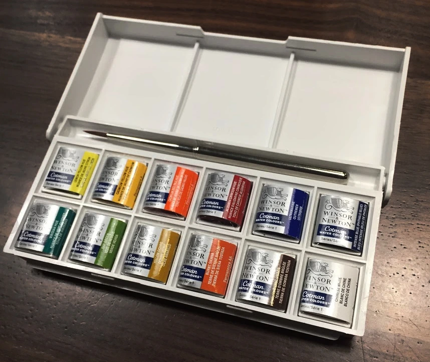 이제 돈을 버는 사회인이 되었겠다 마음 같아서는 36색 물감을 지르고 싶었지만, 이 취미에 대한 갈망이 얼마나 갈지에 대한 확신이 없었던 터라 가장 작은 12색 물감을 집어 들었다. 역시 고체 물감은 어디에나 들고 다닐 수 있도록 간소한 걸 사는 게 맞다는 자기 위안과 함께. (물론 구매 후 팔레트를 가지고 집 바깥으로 다니는 일은 일어나지 않았다.)