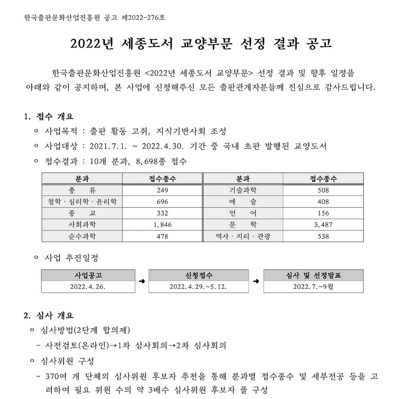 높은 경쟁률을 뚫고 인문도서로 얻을 수 있는 굉장한 영광이자 상을 탄 셈이다.