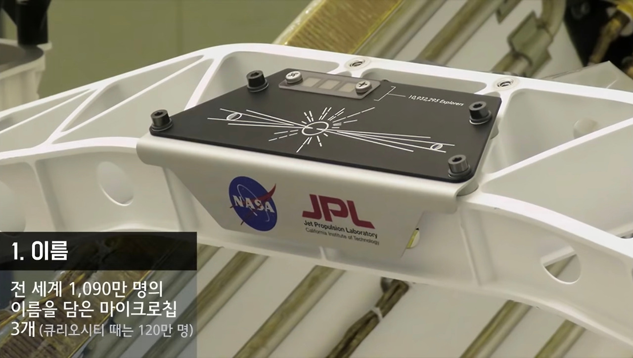 전 세계 1,090만 명의 이름이 담긴 칩 3개가 실려 있다. 이름은 누구든 NASA사이트에서 신청하면 차별 없이 받아 기입해서 탐사선에 실어준다고. 이번 탐사선은 출발해버렸지만, 다음 화성 탐사선에 실릴 이름도 신청을 받고 있다.
